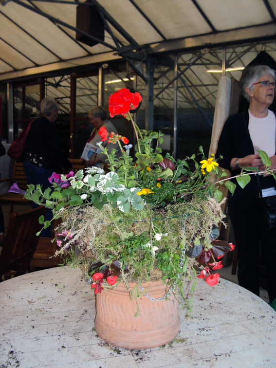 May’s meeting was held at Toomers Garden Centre near Lydiard Millicent. Nigel demonstrated how to make moss hanging basket filled with trailing begonias, lobelia, pelargoniums, geraniums, fuchsias, surfinas, verbena and marigolds. It was amazing how many plants fitted into a 14’’ basket. The finished basket was raffled and £40 raised for a Meningitis charity. We then had tea and some delicious and very generous pieces of cake and a chance to buy some plants some of which were really unusual.