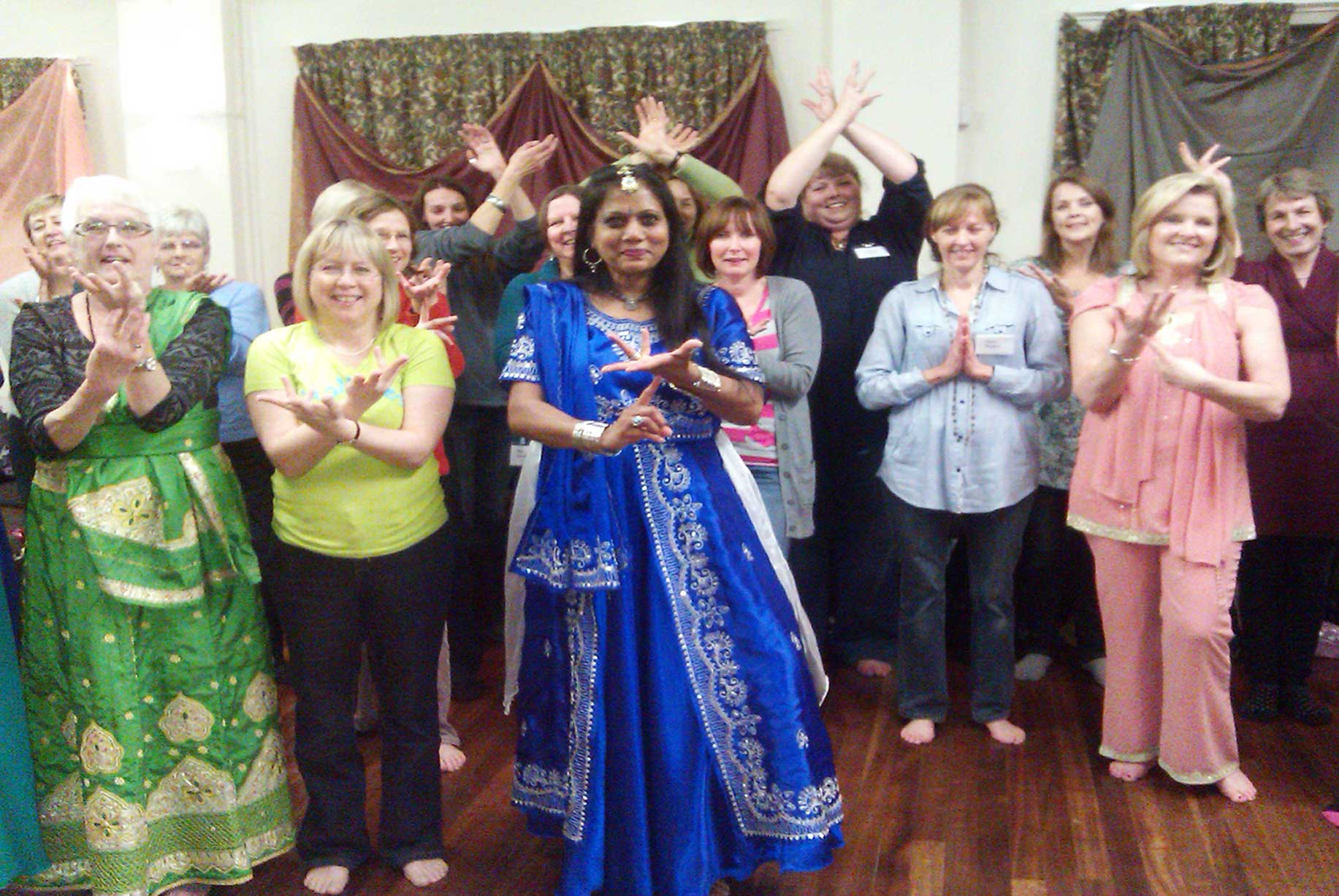 This month we had a great Bollywood themed evening lead by our speaker and Indian dance teacher Dorothy Clarke, who arrived wearing a dazzling royal blue dress embellished with mirrors and beads.